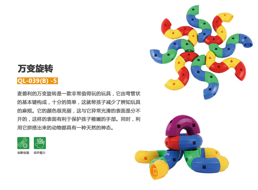 麥德利的萬變旋轉(zhuǎn)是一款非常值得玩的玩具,它由彎管狀的基本鍵構(gòu)成,十分的簡(jiǎn)單,這就幫孩子減少了辨知玩具的麻煩。