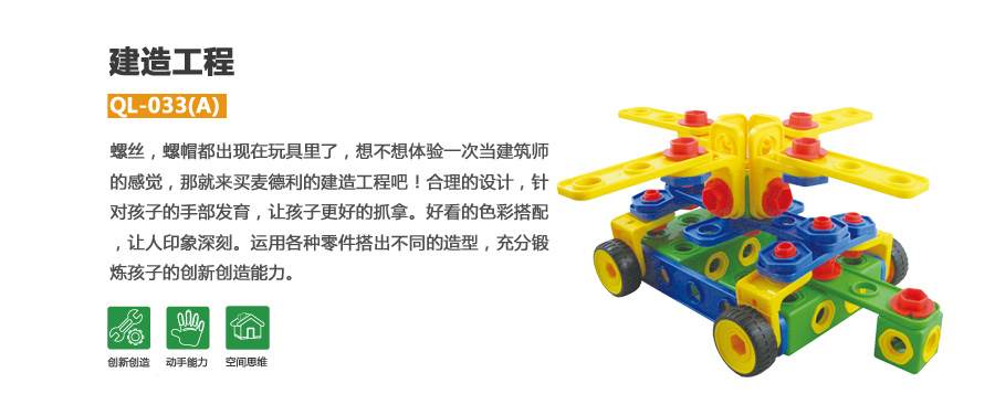 螺絲,螺帽都出現(xiàn)在玩具里了,想不想體驗(yàn)一次當(dāng)建筑師的感覺(jué),那就來(lái)買麥德利的建造工程吧!合理的設(shè)計(jì),針對(duì)孩子的手部發(fā)育,讓孩子更好的抓拿。