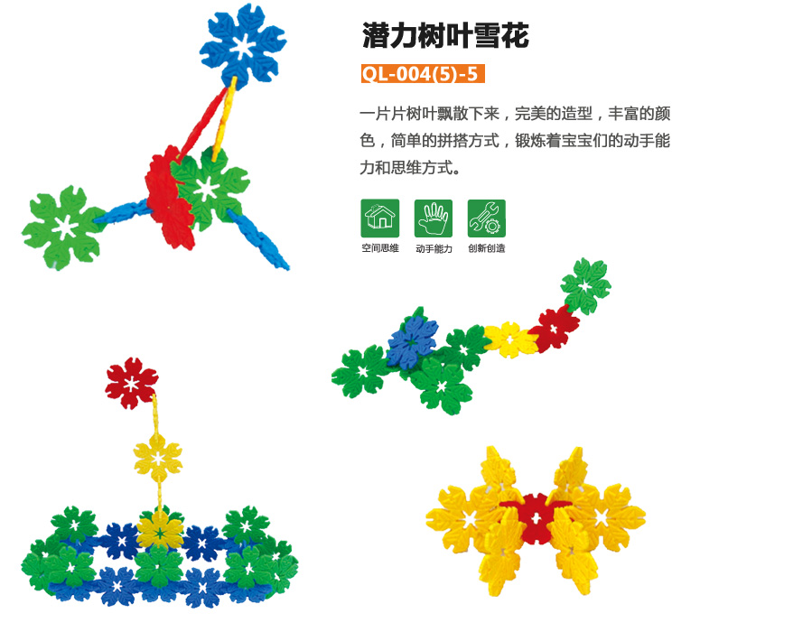 一片片樹葉飄散下來,完美的造型,豐富的顏色,簡單的拼搭方式,鍛煉著寶寶們的動手能力和思維方式。