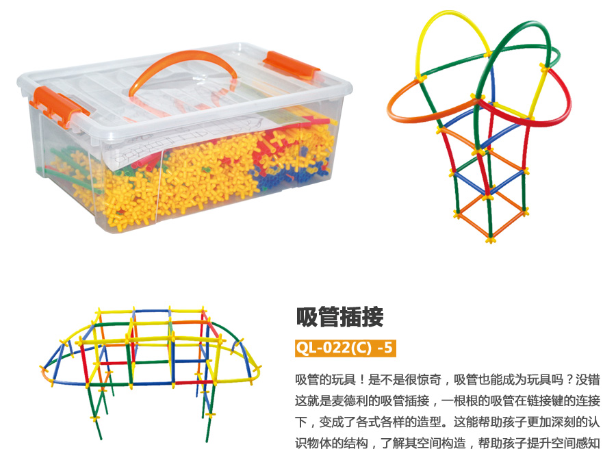 吸管的玩具!是不是很驚奇,吸管也能成為玩具嗎?沒錯(cuò)這就是麥德利的吸管插接,一根根的吸管在鏈接鍵的連接下,變成了各式各樣的造型。