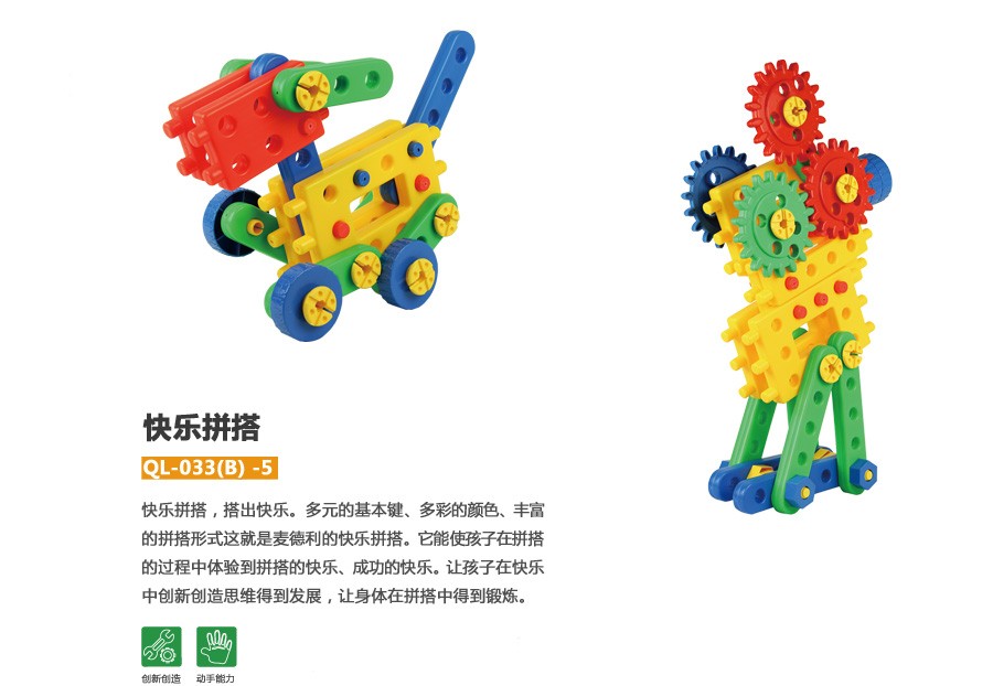 快樂拼搭,搭出快樂。多元的基本鍵、多彩的顏色、豐富的拼搭形式這就是麥德利的快樂拼搭。它能使孩子在拼搭的過程中體驗(yàn)到拼搭的快樂、成功的快樂。