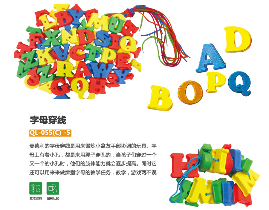 麥德利的字母穿線是用來鍛煉小朋友手部協(xié)調(diào)的玩具。