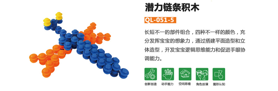 長(zhǎng)短不一的部件組合,四種不一樣的顏色,充分發(fā)揮寶寶的想象力,通過搭建平面造型和立體造型,開發(fā)寶寶邏輯思維能力和促進(jìn)手眼協(xié)調(diào)能力。