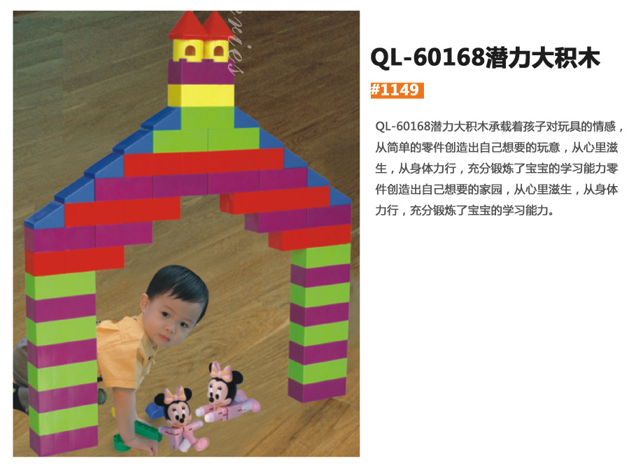 QL-60168潛力大積木承載著孩子對玩具的情感,從簡單的零件創(chuàng)造出自己想要的建筑,從心里滋生,從身體力行,充分鍛煉了寶寶的學(xué)習(xí)能力。