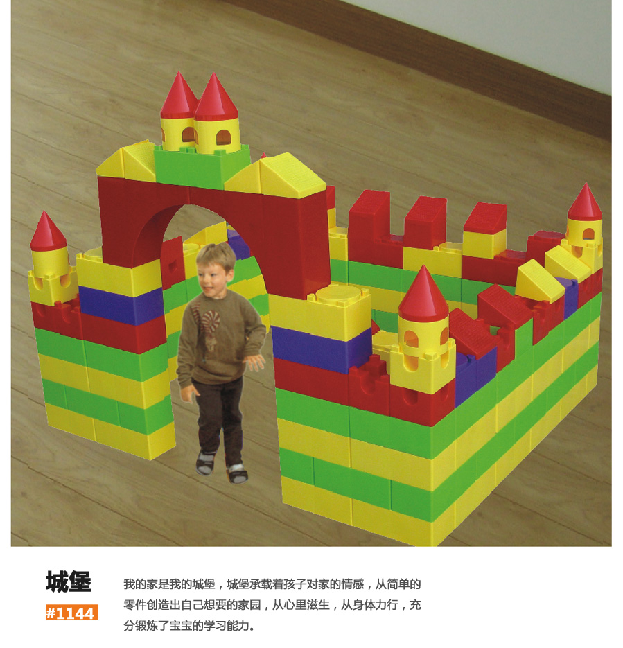 大型積木玩具是新型塑料積木(健康環(huán)保),各種各樣的外形,提供孩子無限創(chuàng)造的可能。對于啟發(fā)孩子的智力來講,能得到練習(xí)。