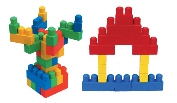 五顏六色的積木組成了一個個可愛的小玩具,當寶寶拿在手里時會愛不釋手,正因為這種喜愛而讓寶寶們開始學會色彩的分類,形狀的拼搭。